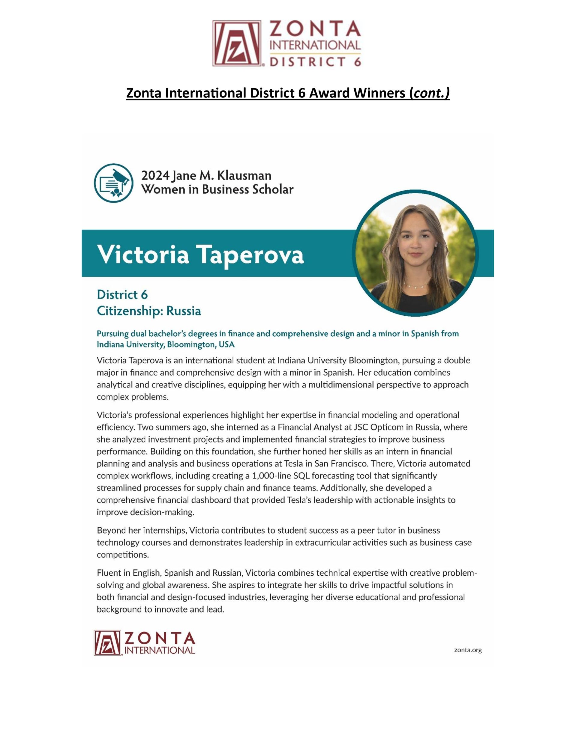 Victoria Taperova is an international student at Indiana University Bloomington, pursuing a double major in finance and comprehensive design with a minor in Spanish. Her education combines analytical and creative disciplines, equipping her with a multidimensional perspective to approach complex problems.
