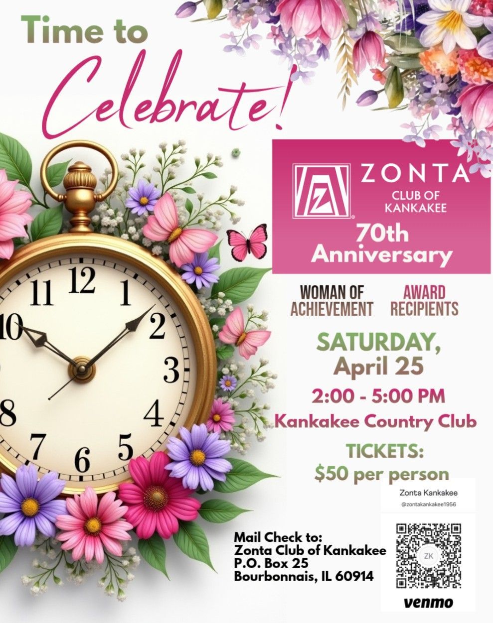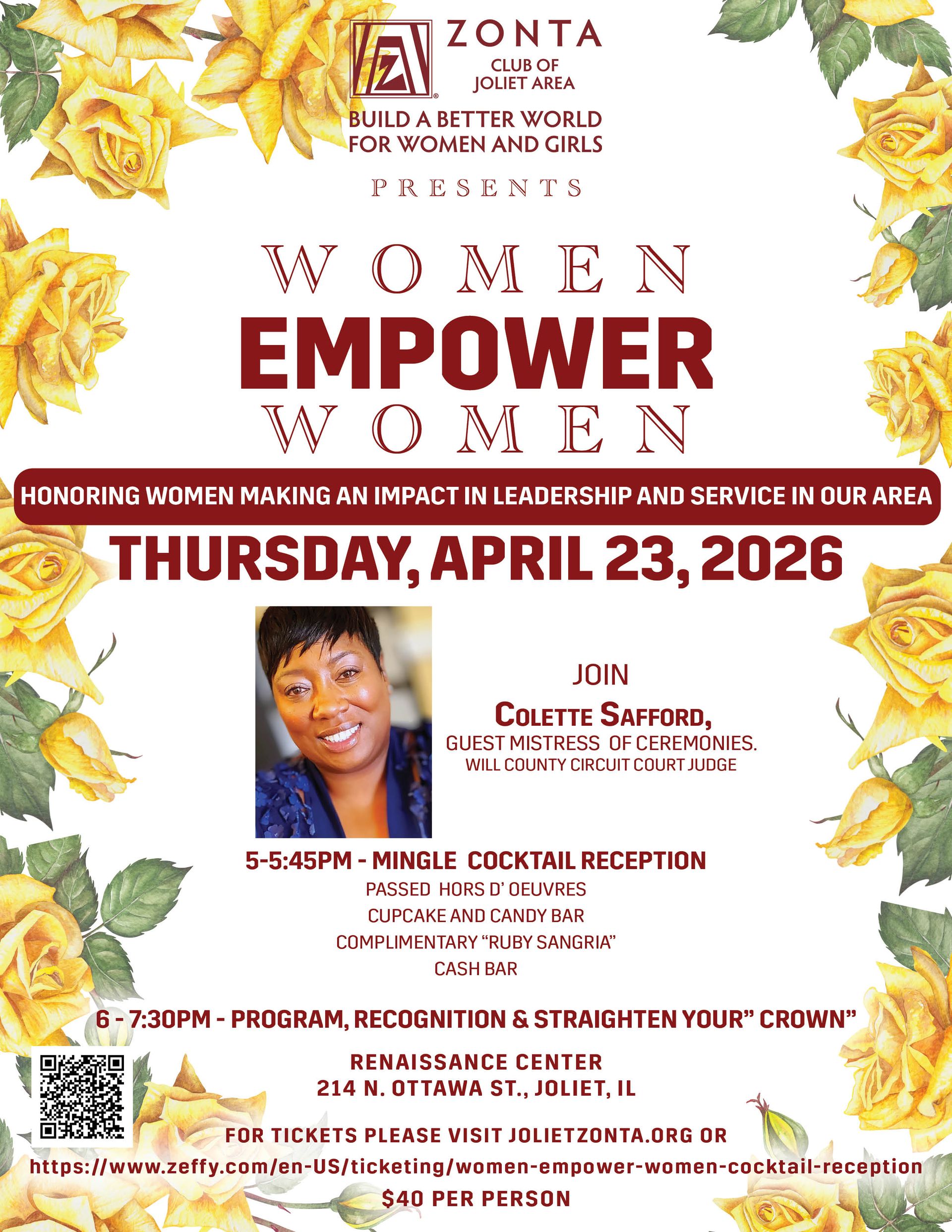 The Zonta Club of Kankakee and the Zonta Club of Joliet would like to invite you to their upcoming events! Please see the attached flyers for more information. You can reach out to me if you have any questions. I will be happy to pass them along to the clubs.